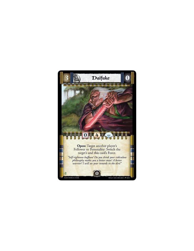 Daifuke  - Open: Target another player's Follower or Personality: Switch the target's and this card's Force.
