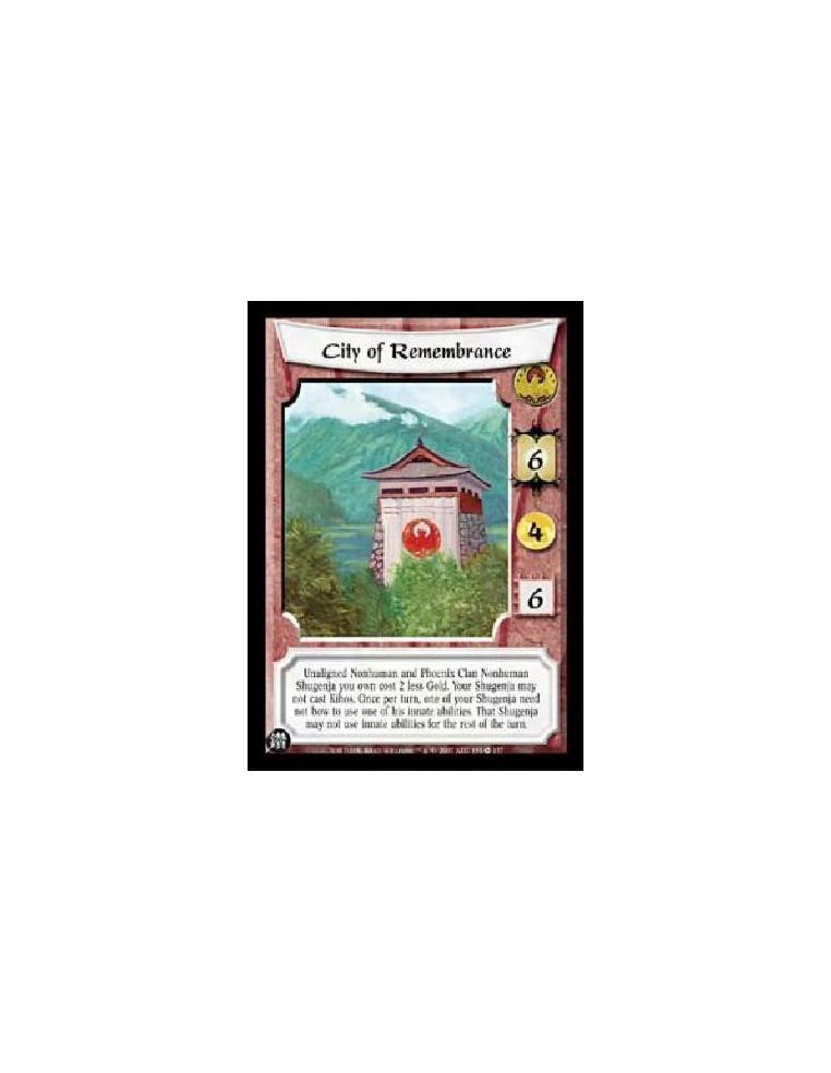 City of Remembrance  - Unaligned Nonhuman and Phoenix Clan Nonhuman Shugenja you own cost 2 less Gold. Your Shugenja may not cas