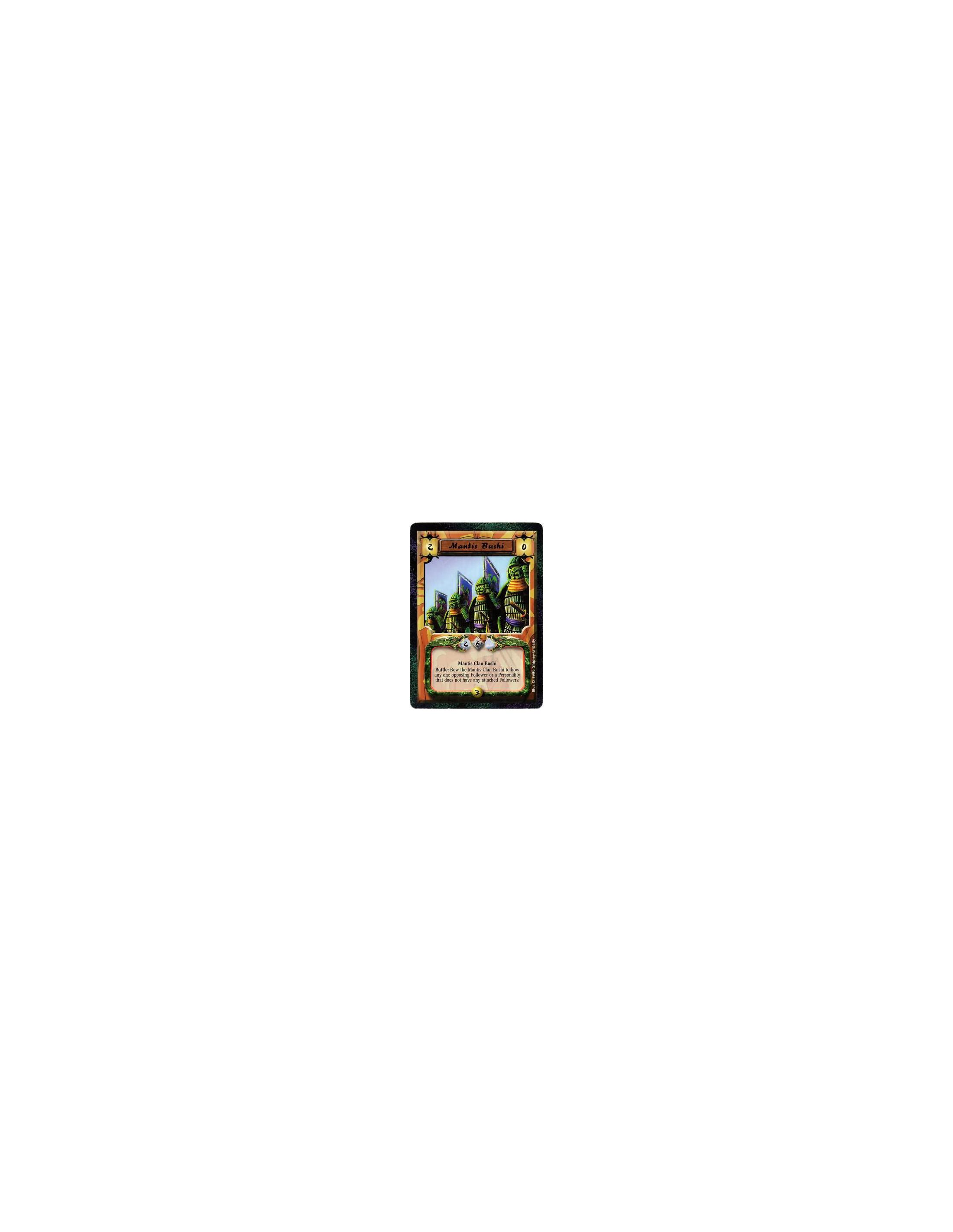 Mantis Clan • Samurai • Naval • Scout Battle: If a Recon action targeted this battlefield’s province this turn and you have 2 or fewer cards in your hand: Draw a card.