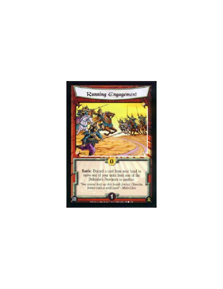 Running Engagement  - Battle: Discard a card from your hand to move one of your units from one of the Defender's Provinces to an
