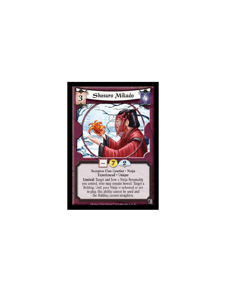 Scorpion Clan Samurai · Experienced · Unique. Other players may not target Tsimaru with Political actions Reaction: Before a unit moves: Twice per turn, negate the movement
