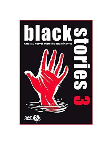Black Stories 3. 50 Nuevos misterios todavía más oscuros escandalosos y difíciles de resolver. ¡Resuelve los rompecabezas!. Reconstruye los detalles de cada incidente, pieza a pieza, haciendo preguntas, adivinando o reuniendo pruebas – tu solo o con amigos. Un juego de adivinanzas espeluznante y divertido sin el que no debería celebrarse ninguna fiesta. No es necesario que tengas Black Stories para jugar a Black Stories 3