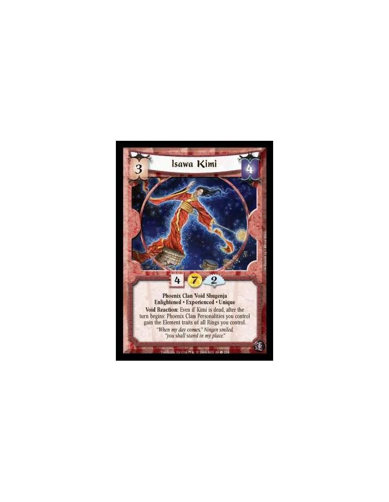Isawa Kimi Exp  - Phoenix Clan Void Shugenja · Enlightened · Experienced · Unique. Void Reaction: Even if Kimi is dead, after th