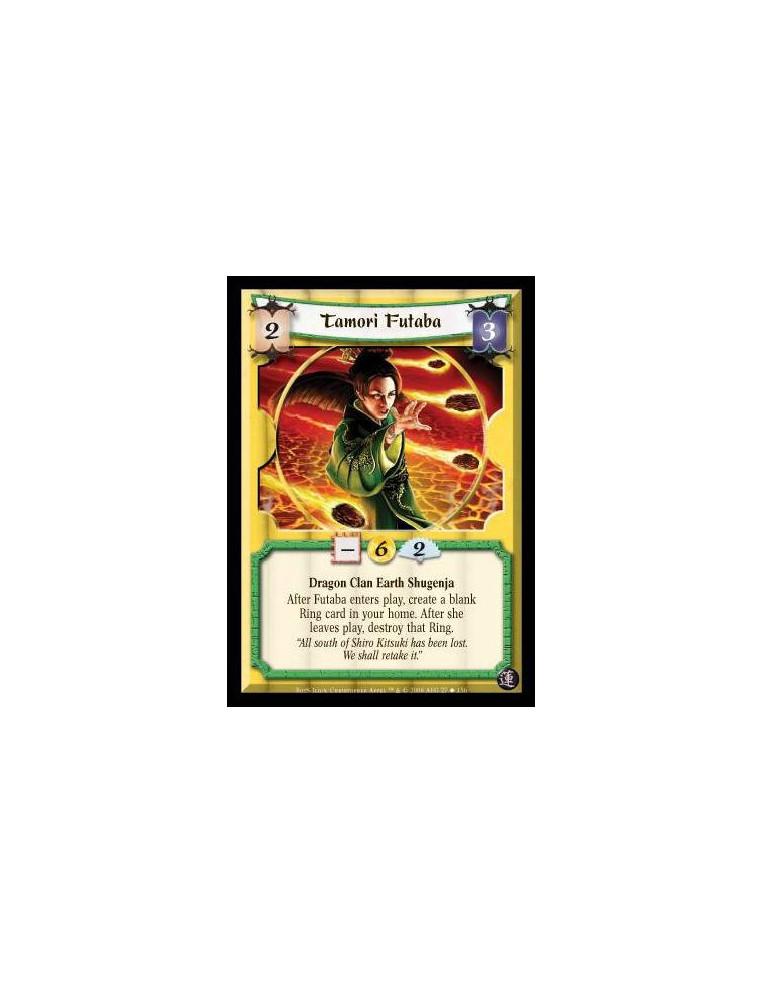Tamori Futaba  - Dragon Clan Earth Shugenja. After Futaba enters play, create a blank Ring card in your home. After she leaves p