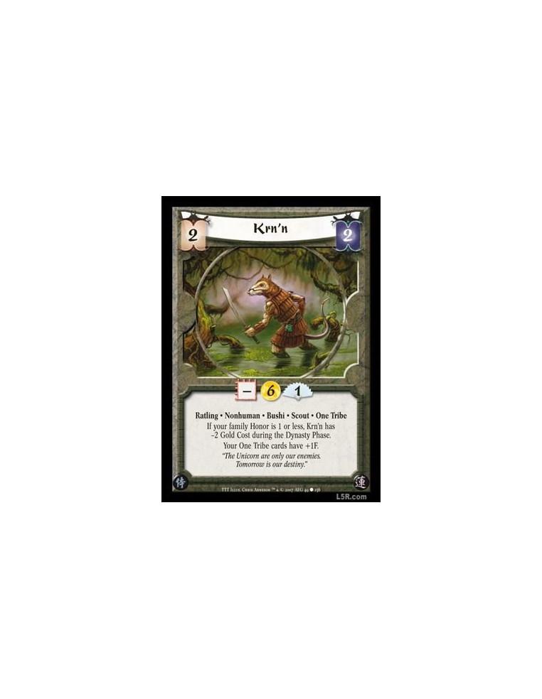 Krn'n (Español)  - Ratling · Nonhuman · Bushi · Scout · One Tribe. If your family Honor is 1 or less, Krn?n has -2 Gold Cost dur