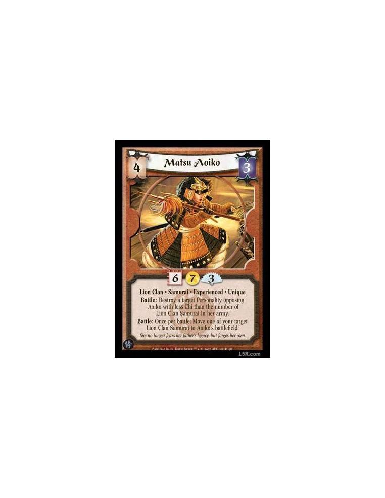 Lion Clan · Samurai · Experienced · Unique. Battle: Destroy a target Personality opposing Aoiko with less Chi than the number of Lion Clan Samurai in her army. Battle: Once per battle: Move one of  your target Lion Clan Samurai Aoiko's battlefield.
