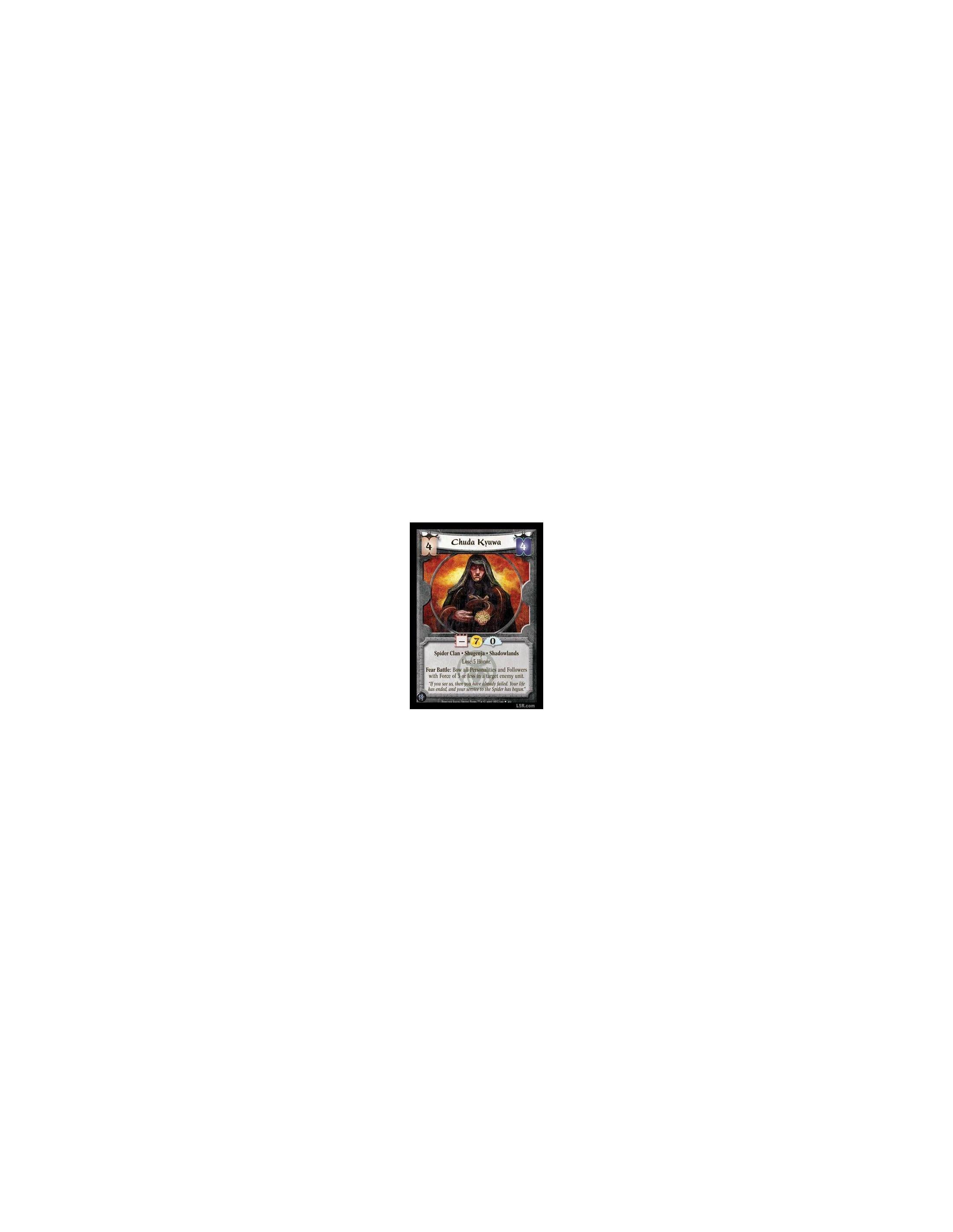 Chuda Kyuwa  - Spider Clan · Shugenja · Shadowlands. Lose 5 Honor. Fear Battle: Bow all Personalities and Followers with Force o