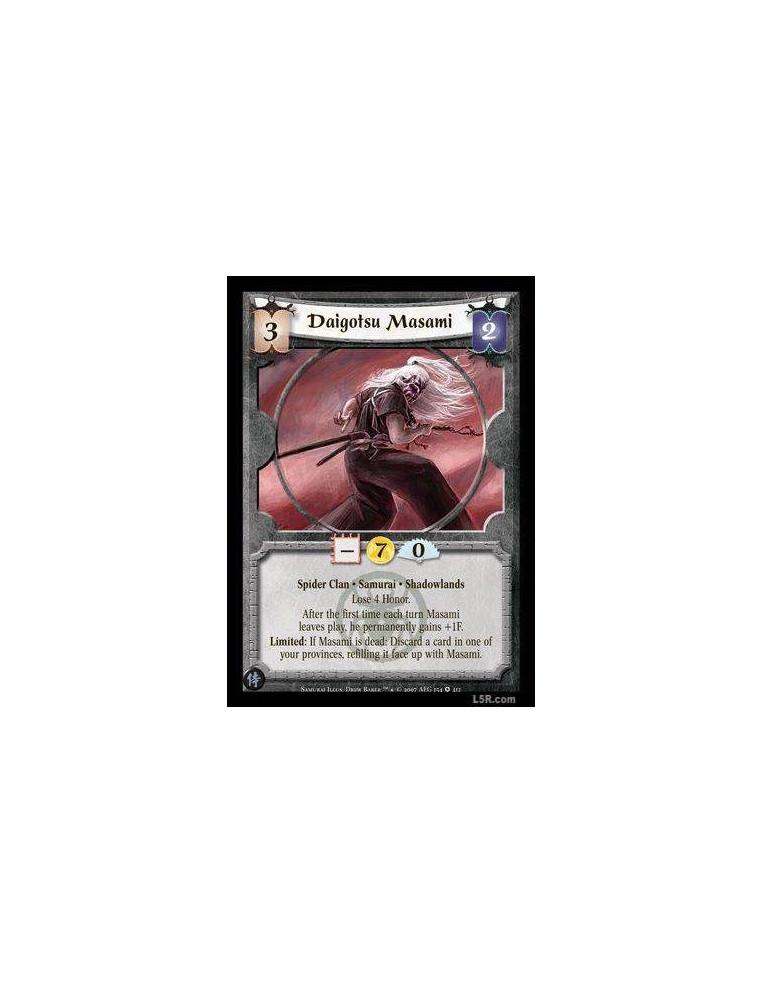 Daigotsu Masami  - Spider Clan · Samurai · Shadowlands. Lose 4 Honor. After the first time each turn Masami leaves play, he perm