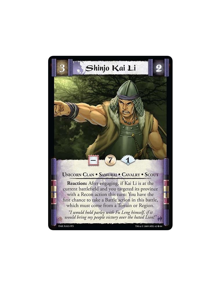 Shinjo Kai Li  - Unicorn Clan • Samurai • Cavalry • Scout Reaction: After engaging, if Kai Li is at the current battlefield and