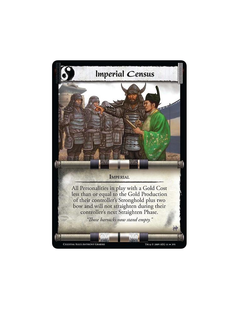 Political Limited: Bow one of your Personalities to prevent two players from inviting each other to ally for the rest of the game. The players may negate this effect if and when each destroys one of his or her Personalities as a Limited action, as "a sign of good will." If they do this, for the rest of the game each Samurai they send as defending allies...