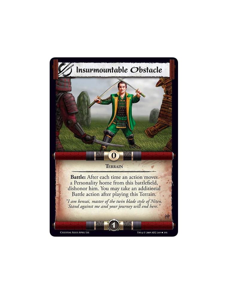 Insurmountable Obstacle  - Terrain Battle: After each time an action moves a Personality home from this battlefield, dishonor hi