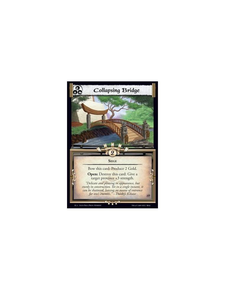 Collapsing Bridge  - Siege Bow this card: Produce 2 Gold. Open: Destroy this card: Give a target province +3 strength.