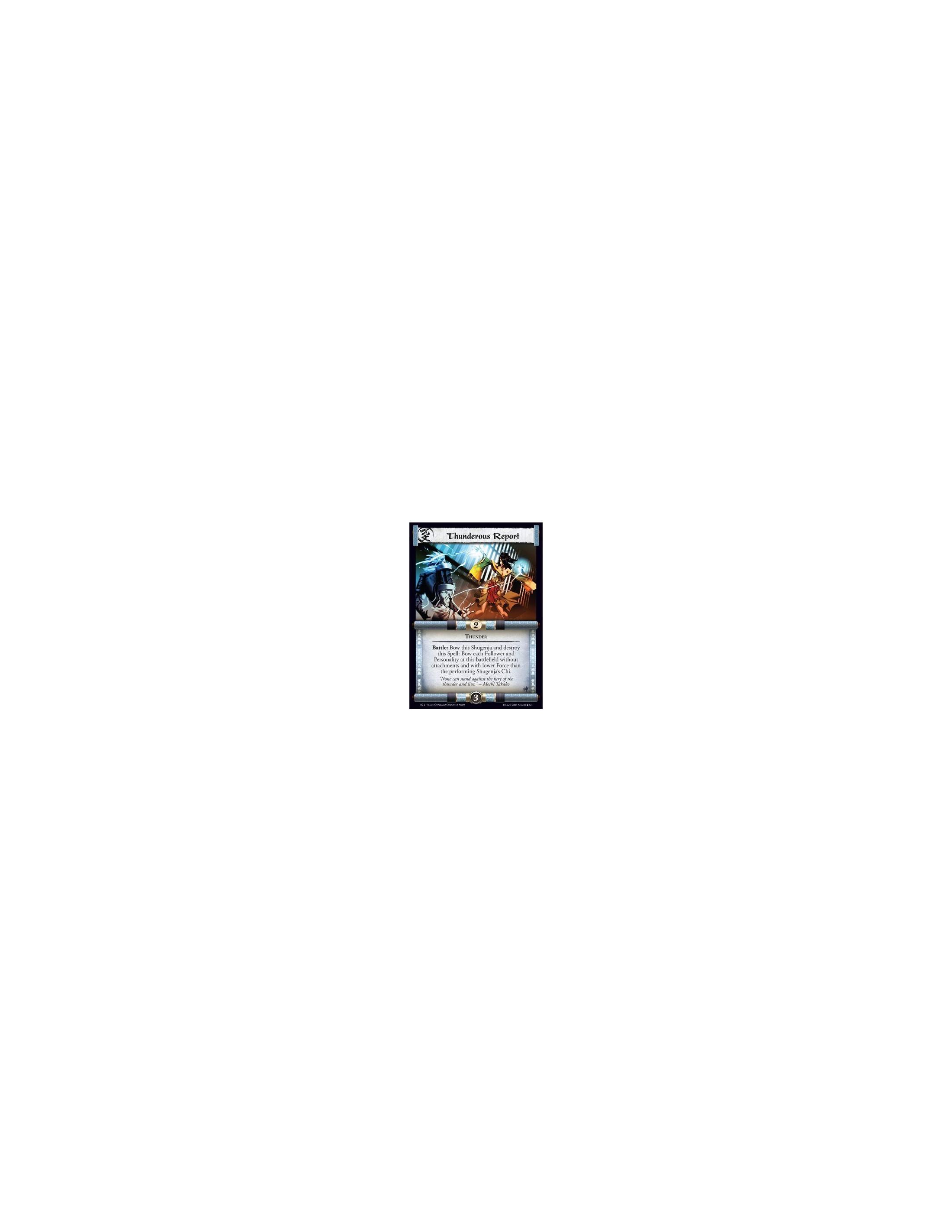 Lion Clan • Samurai • Hero. Heroic Reaction: After Fukiki’s army destroys one or more provinces or units by winning a battle: Gain 2 Honor