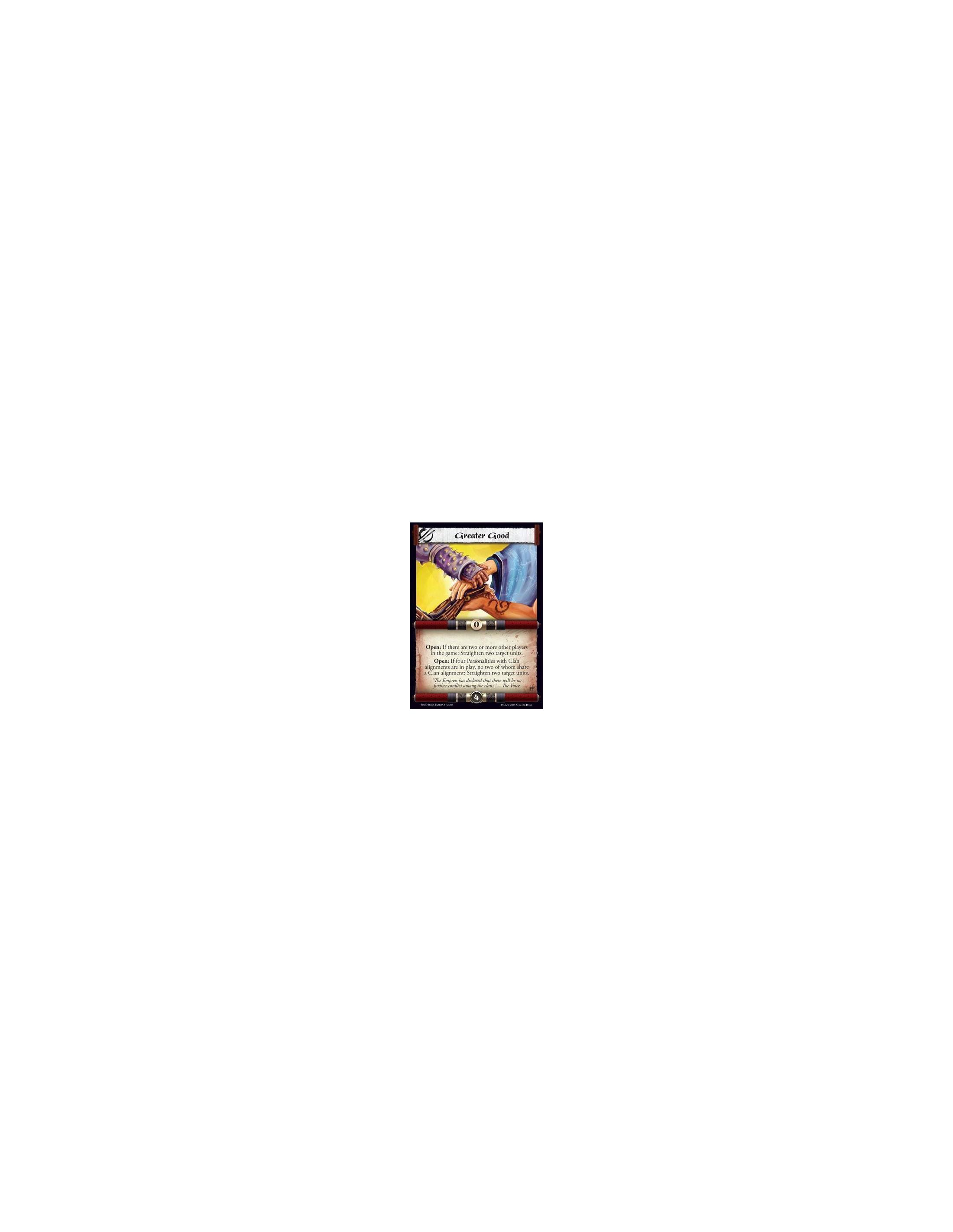 Greater Good  - Open: If there are two or more other players in the game: Straighten two target units. Open: If four Personaliti