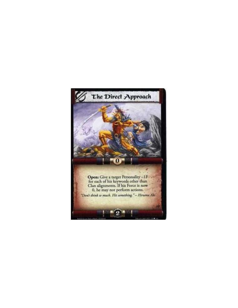 The Direct Approach  - Open: Give a target Personality -1F for each of his keywords other than Clan alignments. If his Force is