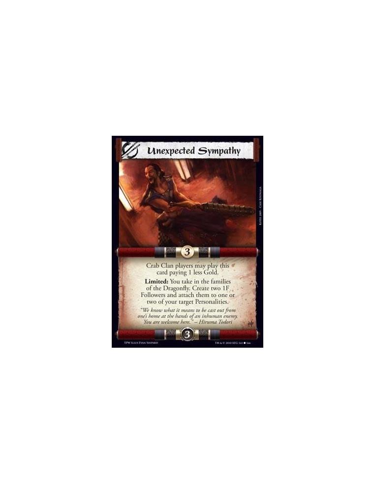 Unexpected Sympathy  - Crab Clan players may play this card paying 1 less Gold. Limited: You take in the families of the Dragonf