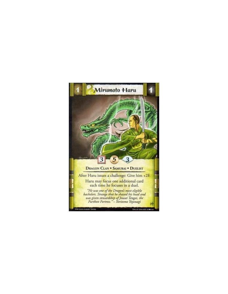 Mirumoto Haru  - Dragon Clan • Samurai • Duelist After Haru issues a challenge: Give him +2F. Haru may focus one additional card