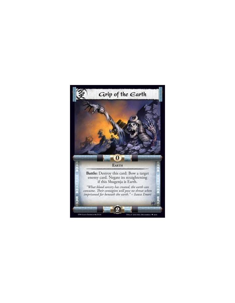 Grip of the Earth  - Earth  Battle: Destroy this card: Bow a target enemy card. Negate its straightening if this Shugenja is Ear
