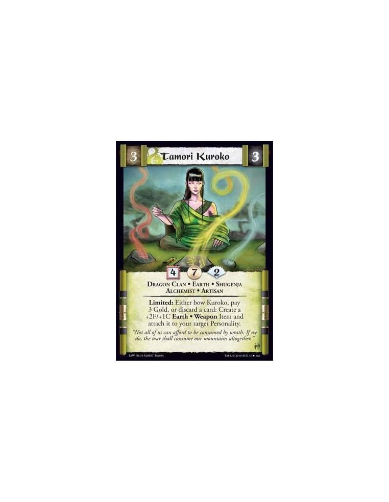 Tamori Kuroko (Español)  - Dragon Clan • Earth • Shugenja • Alchemist • Artisan Limited: Either bow Kuroko, pay 3 Gold, or disca