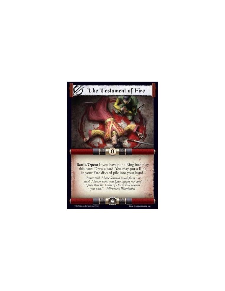 The Testament of Fire  - Battle/Open: If you have put a Ring into play this turn: Draw a card. You may put a Ring in your Fate d