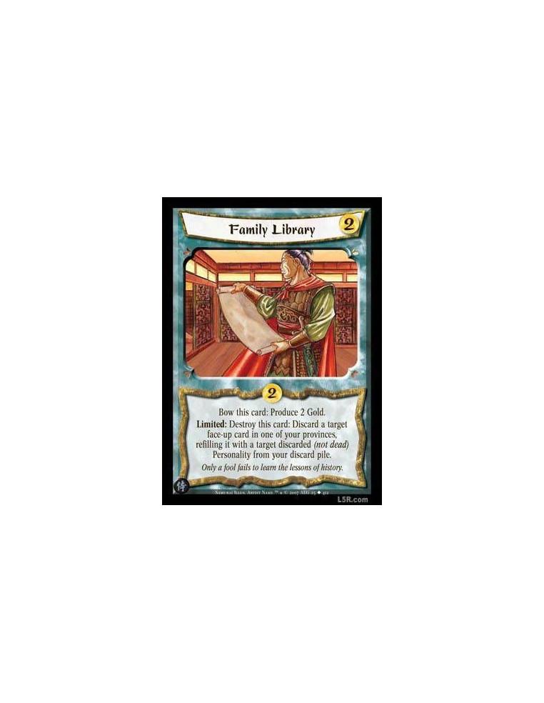 Family Library  - Bow this card: Produce 2 Gold.  Limited: Destroy this card: Discard a face-up card in one of your provinces, r