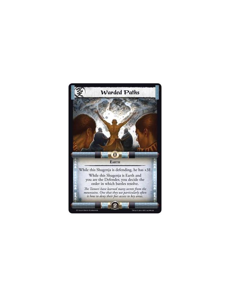 Warded Paths  - EarthWhile this Shugenja is defending, he has +3F. While this Shugenja is Earth and you are the Defender, you de