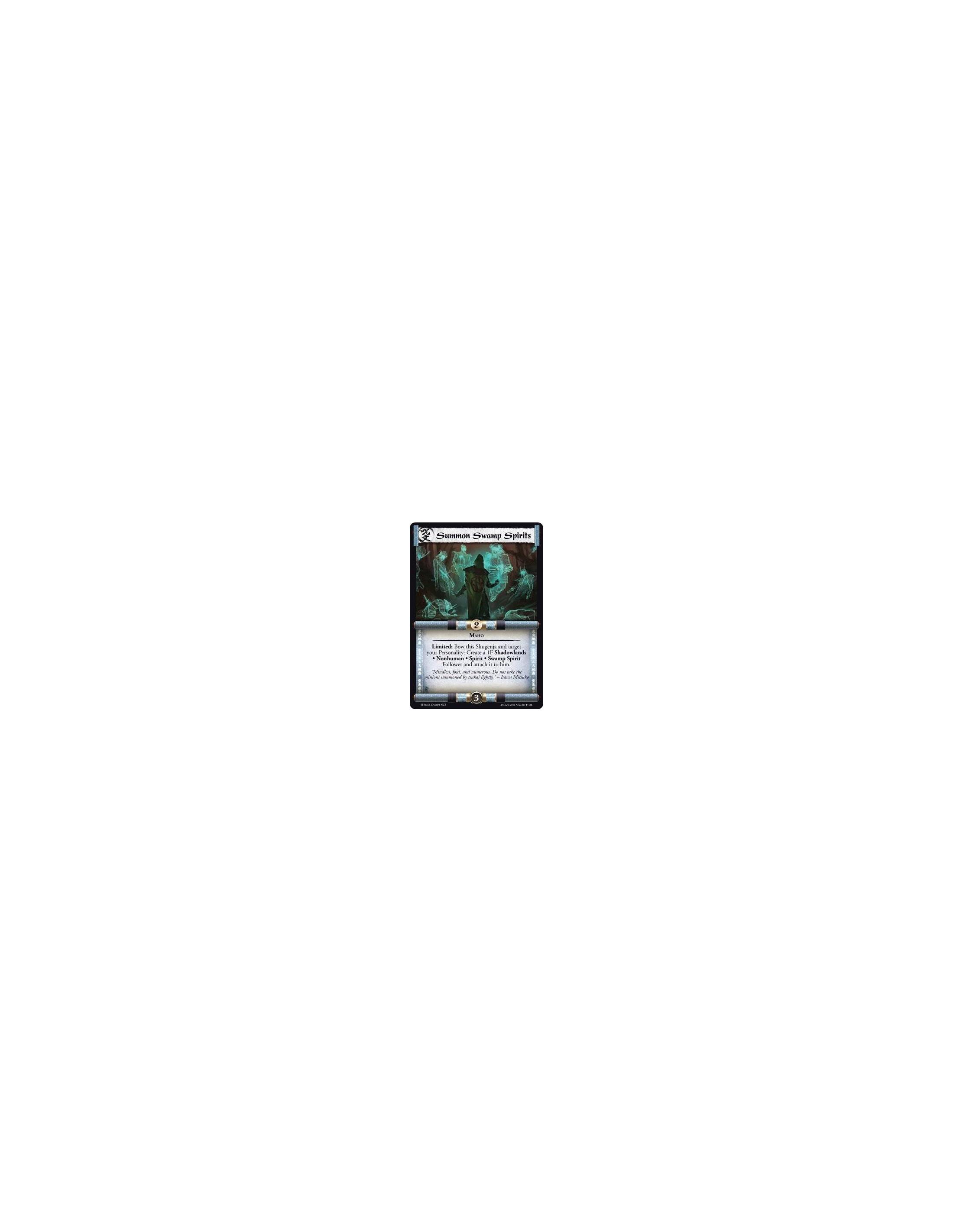 Summon Swamp Spirits  - MahoLimited: Bow this Shugenja and target your Personality: Create a 1F Shadowlands • Nonhuman • Spirit