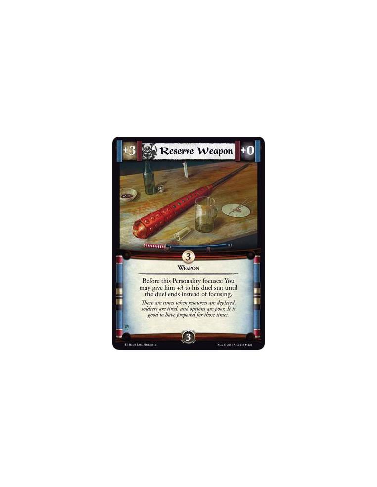 Reserve Weapon  - WeaponBefore this Personality focuses: You may give him +3 to his duel stat until the duel ends instead of foc
