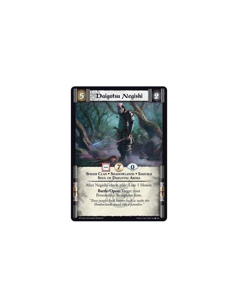 Daigotsu Negishi  - Spider Clan • Shadowlands • Samurai • Soul of Daigotsu ArimaAfter Negishi enters play: Lose 1 Honor. Battle/