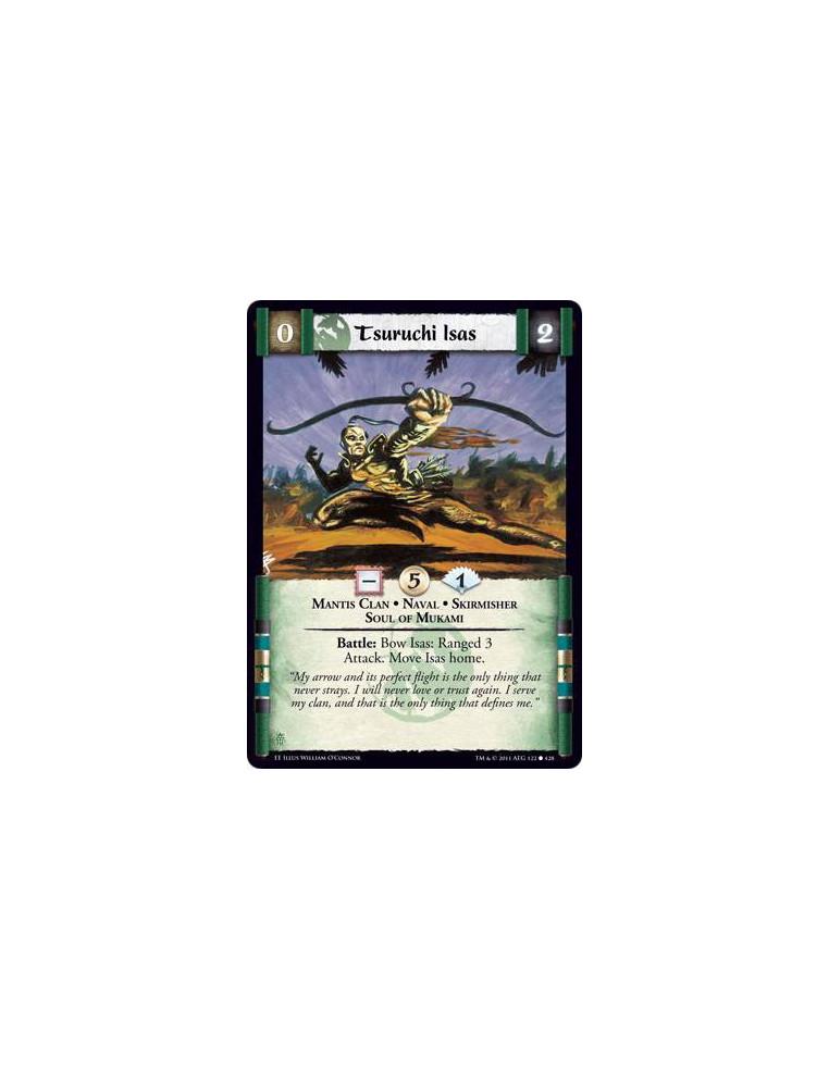 Tsuruchi Isas  - Mantis Clan • Naval • Skirmisher • Soul of MukamiBattle: Bow Isas: Ranged 3 Attack. Move Isas home.
