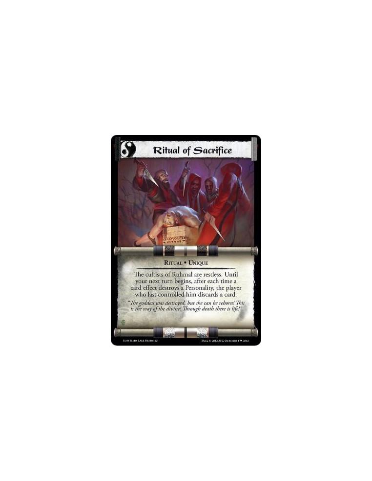 Ritual of Sacrifice  - Ritual • UniqueThe cultists of Ruhmal are restless. Until your next turn begins, after each time a card e