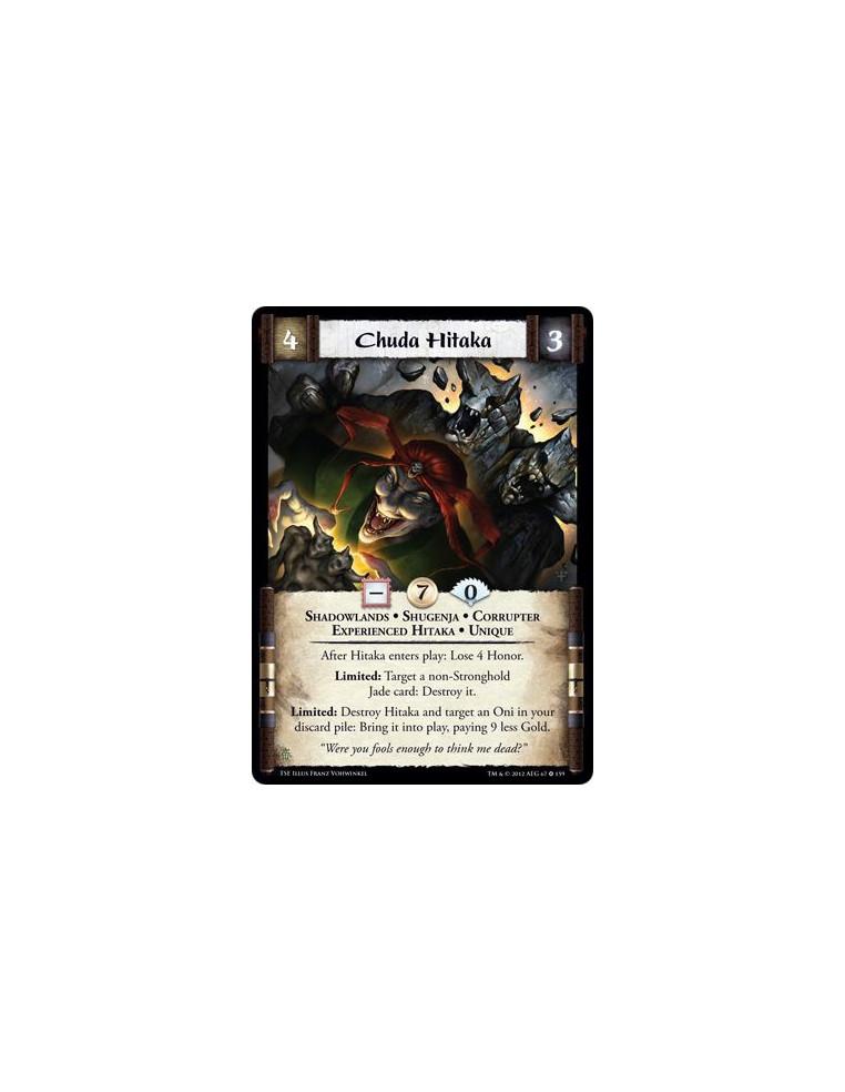 Lion Clan • Samurai • Soul of Akodo IeshigeBefore (each time) another player's action resolves during a battle at Shihiro's battlefield: Give Shihiro +1F (until the turn ends).
