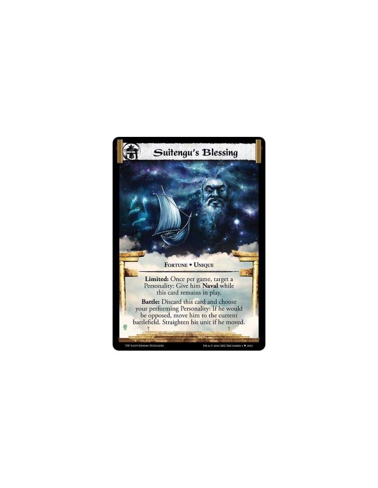 Suitengu's Blessing  - Fortune • UniqueLimited: Once per game, target a Personality: Give him Naval while this card remains in p