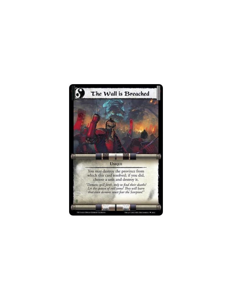 The Wall is Breached  - UniqueYou may destroy the province from which this card resolved; if you did, choose a unit and destroy