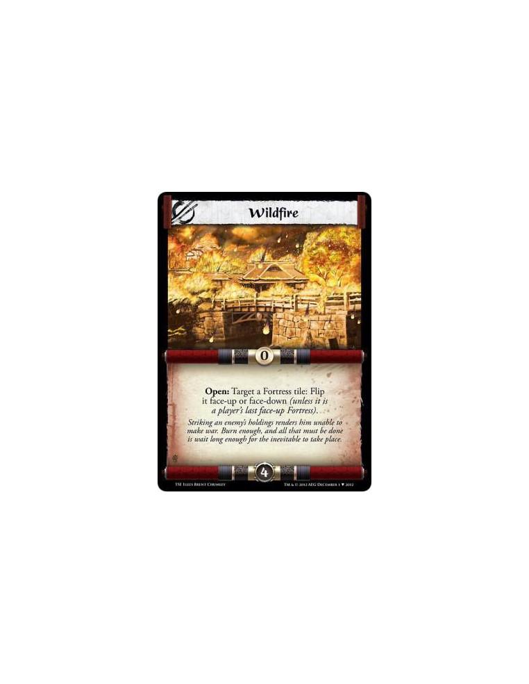 Wildfire  - Open: Target a Fortress tile: Flip it face-up or face-down (unless it is a player's last face-up Fortress).