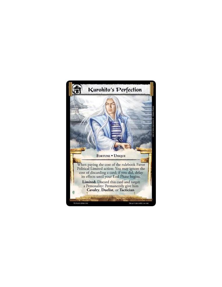 Unicorn Clan Shugenja · Cavalry · Enlightened · Experienced · Unique. Akikazu has a Force bonus equal to the highest number of dead Personalities in any one discard pile. Elemental Open: Bow a Ring you control: Target a Personality. His controller must bow or discard a Ring he owns as a cost to assign or move into battlefields this turn.