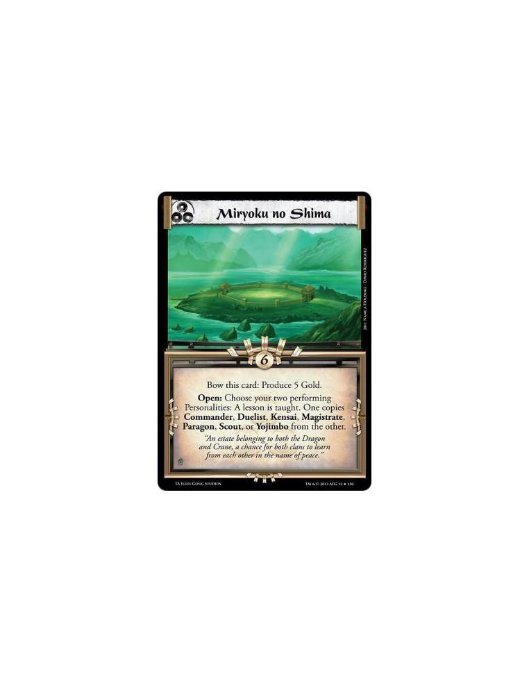 Miryoku no Shima  - Bow this card: Produce 5 Gold.Open: Choose your two performing Personalities: A lesson is taught. One copies