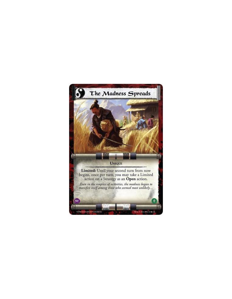 The Madness Spreads  - UniqueLimited: Until your second turn from now begins, once per turn, you may take a Limited action on a