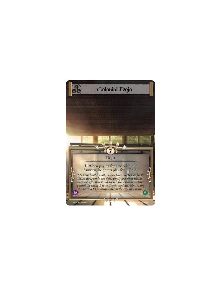 Dragon Clan • Earth • Reserve • Shugenja (You may Recruit a Reserve card, if it would be opposed, as an Absent Battle action.)Enters play for 4 less Gold if you are the Defender.