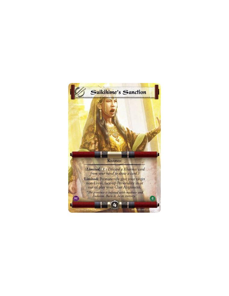 Weapon This Personality will not issue challenges. Battle: Bow this card: Destroy a target enemy Follower or Item.