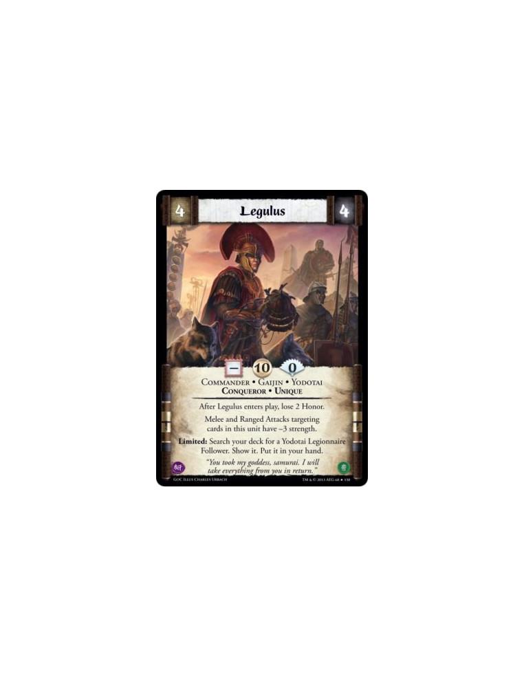 Political Limited: The player or players with the most Family Honor each reveal the top card of their Fate deck and lose Honor equal to the revealed Focus value. This will not reduce any player below 10 Family Honor.