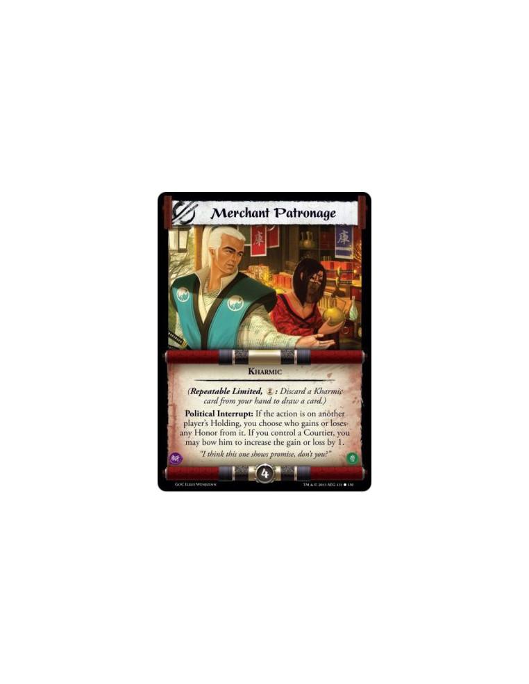 Merchant Patronage  - Kharmic(Repeatable Limited, 2: Discard a Kharmic card from your hand to draw a card.)Political Interrupt: