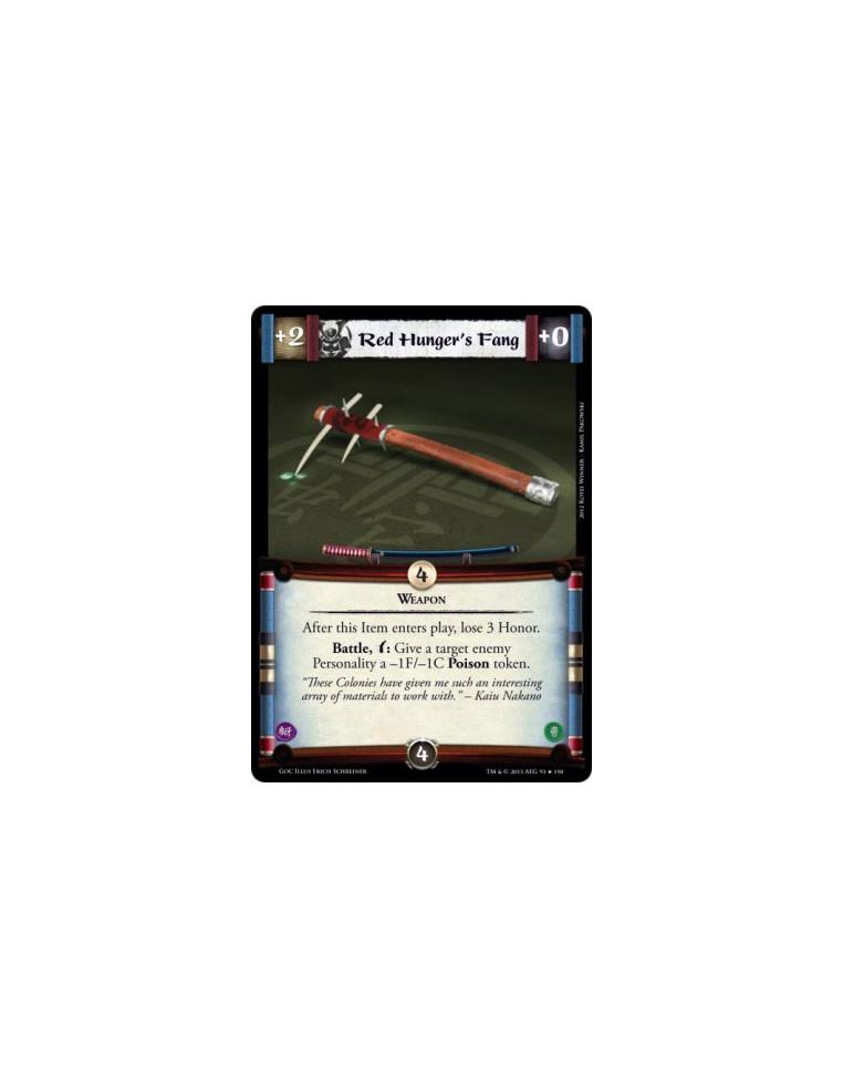 Red Hunger's Fang FOIL  - WeaponAfter this Item enters play, lose 3 Honor.Battle, w: Give a target enemy Personality a -1F/-1C P