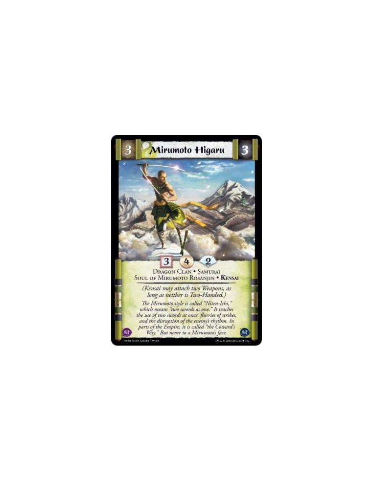 Mirumoto Higaru  - Dragon Clan • Samurai • Soul of Mirumoto Rosanjin • Kensai(Kensai may attach two Weapons, as long as neither