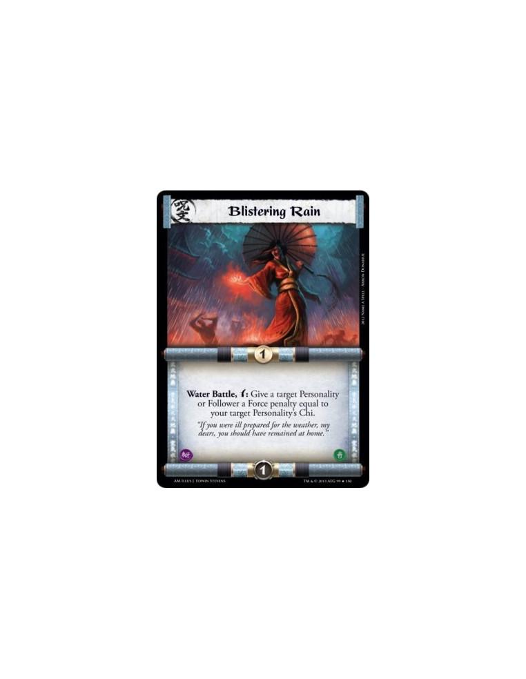 Blistering Rain  - Water                    Water Battle, w: Give a target Personality or Follower a Force penalty equal to your