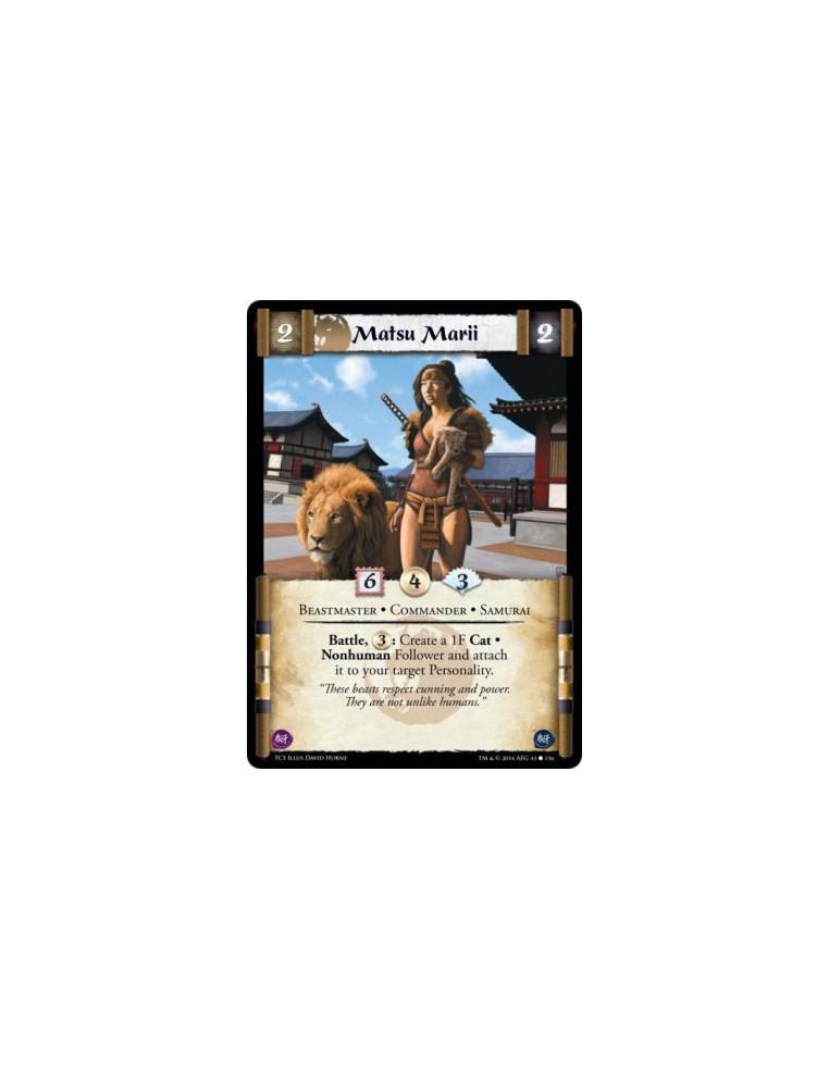 Courtier • MerchantEconomic Open, w: Target a Market or Port card in your Province. You may either take an additional action to use one of its abilities ignoring bow costs, produce 2 Gold, or target your Personality and give him +2F, or +3F if he is Spider Clan. Discard the card and refill the Province face-up.