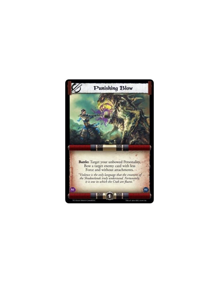 Punishing Blow  - Battle: Target your unbowed Personality. Bow a target enemy card with less Force and without attachments.