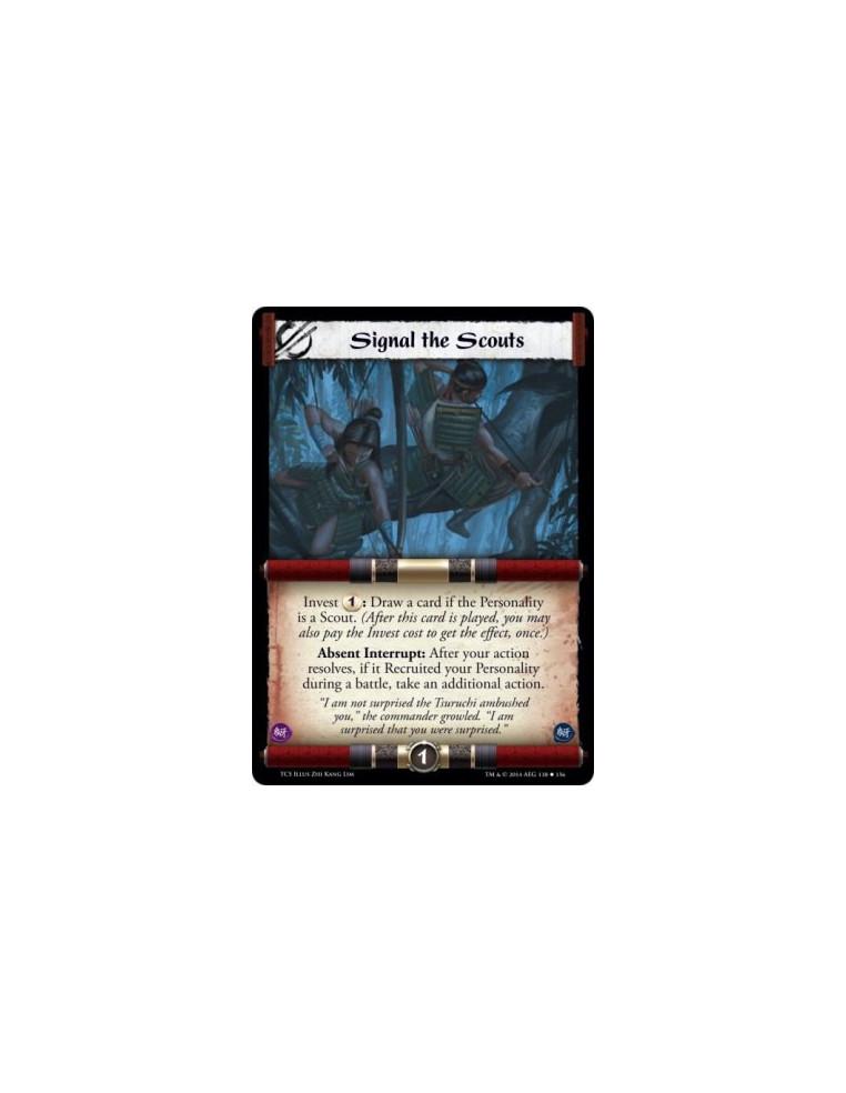Signal the Scouts  - Invest 1: Draw a card if the Personality is a Scout. (After this card is played, you may also pay the Inves