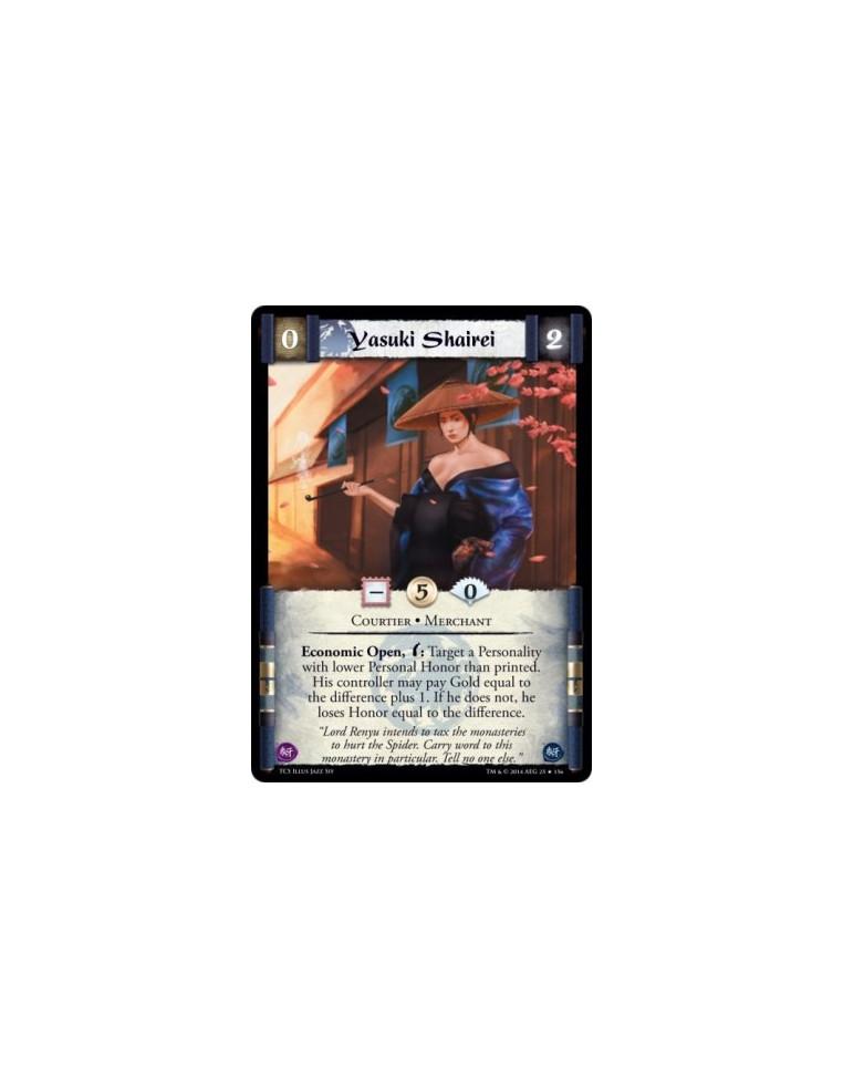 Bow one of your Courtier Personalities, pay 1 Gold, and target an opponent to gain Honor equal to the Courtier's printed Personal Honor. That opponent may draw a card.