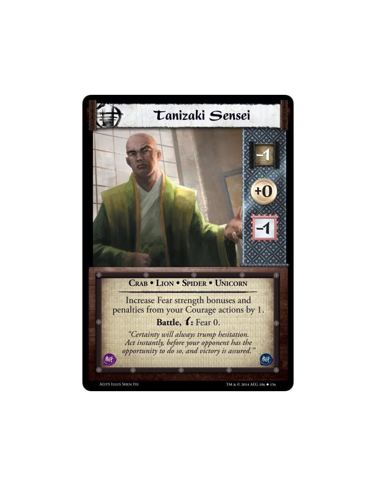 Tanizaki Sensei  - Crab • Lion • Spider • UnicornIncrease Fear strength bonuses and penalties from your Courage actions by 1.Bat